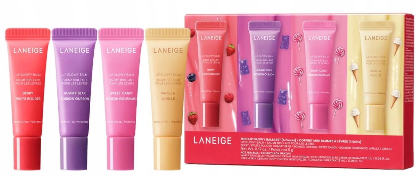 Zestaw to doskonały wybór dla osób, które chcą przetestować kilka wariantów zapachowych Laneige lub mieć podręczne miniatury do torebki, podróży czy codziennego odświeżania ust.